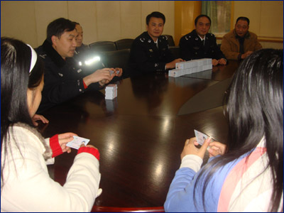 2008年12月26日,三楼会议室欢声笑语,身份证颁发仪式在此举行。市公安局户政处、沙坪坝公安分局户政科、童家桥派出所、川外保卫处的领导和2008级新生代表们参加了仪式。市公安局户政处领导向前来参加仪式的同学们颁发了身份证,并介绍了第二代身份证的鉴别和特点。为了方便师生,市公安局户政部门加快效率、慢证快做,3个月的办理时间缩短成1个星期,就为我校1199名新生制作好了第二代身份证。在身份证颁发仪式上,同学们以热烈的掌声对公安机关、学校派出所表示了感谢。