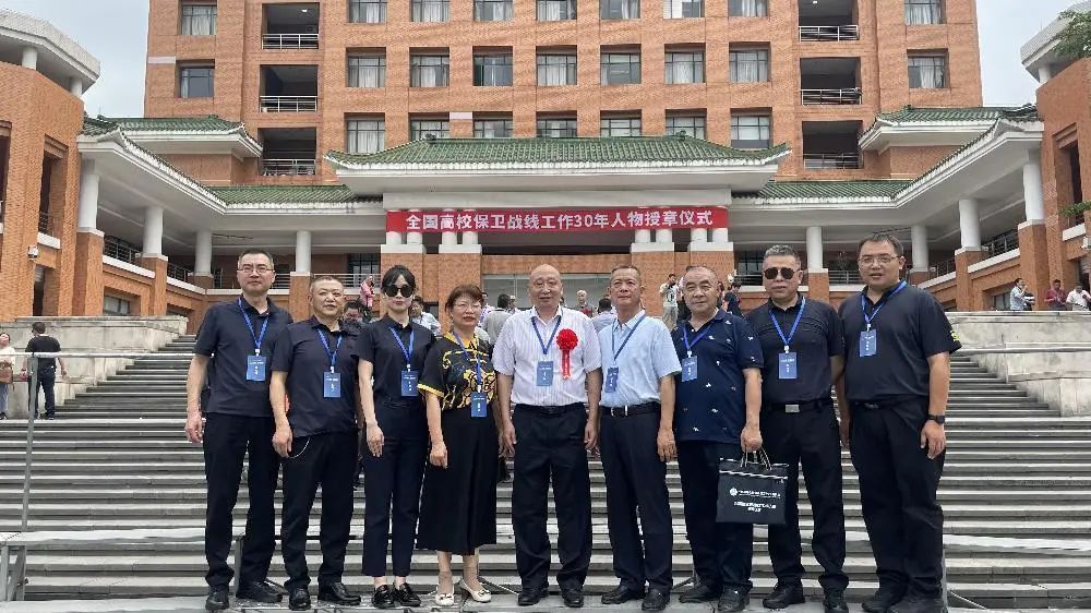 在教育部思想政治工作司指导下,中国高等教育学会保卫学专委会在成立30周年之际面向全国征集了一批长期在校园疫情防控、抗洪抢险、防灾减灾、应急处突、维护稳定等工作中积极奉献、担当作为,为高校安全稳定事业作出了突出贡献的高校保卫战线工作30年人物。我校原党委保卫部部长、保卫处处长、武装部部长李培元同志获得此项表彰,并于今年5月参加了在华南理工大学举行的授章仪式。