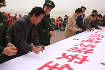 成立大会于当天上午10:00正式开始。重庆市消防总队副队长周崇敏宣布沙区高校学生消防志愿者联队成立并讲话。随后,各高校领导分别为各志愿者大队授旗。沙区政府为24个街镇的农村和社区志愿者消防队伍一次性配发了52台消防摩托车。最后,在场的领导和志愿者们一同观看了来自回龙坝专职消防队等团队的消防业务表演,并在“全民消防•生命至上全面构筑消防安全‘防火墙’”的横幅上签名。