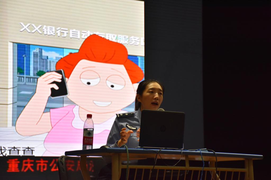 此次讲座主题为“提高警惕,远离通讯、网络诈骗”。钟玲以“关注安全,关爱生命”展开话题,结合重庆高校的真实案例,对大学生人身财产安全、消防安全、交通安全、法律法规常识等内容作了全面生动的讲解。她着重强调了当前高校通讯、网络诈骗案件的危害性并提出具体的防范、处置措施。整场讲座深入浅出,形象生动,受到在场师生的热烈欢迎。