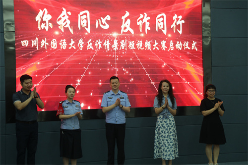 你我同心,反诈同行短视频大赛启动仪式由党委保卫部部长陈派主持。陈派与沙区公安局刑侦支队情报大队探长许靖雯,沙坪坝区童家桥派出所教导员王丹、学校党委宣传部副部长赵捷、党委学生工作部副部长何敏共同启动短视频大赛。