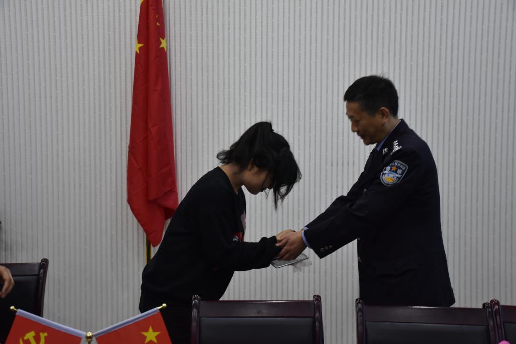 3月12日上午,渝碚路派出所所长李康,教导员何忠,沙分局校保支队支队长罗勇及随行民警主动上门,到学校保卫处将被盗手机退还失主,并接受了我校留学生部赠予的锦旗。李康所长代表警方向大岛千草同学表示:“中国是全世界社会治安最好的国家之一,公安机关高度重视涉校涉生案件,不论案件大不小,一视同仁,一追到底。”大岛千草同学接过失而复得的手机非常感动,频频向民警同志鞠躬致谢。