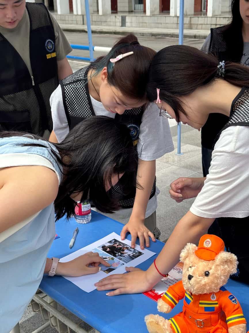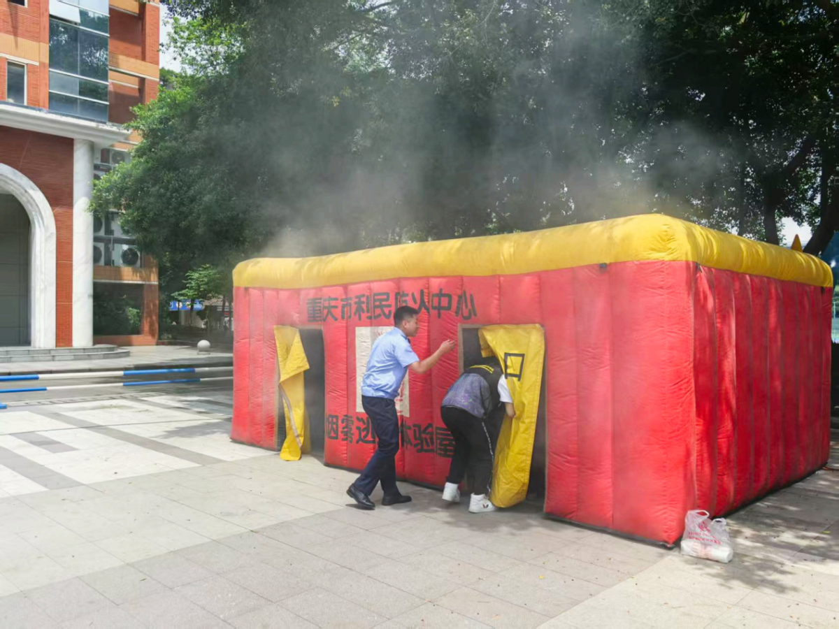 除安全理论问答外,活动还设置了实践体验环节,其中灭火器实操体验关卡成为全场焦点。消防员现场教学灭火器分类及“提、拔、握、压”实战口诀,师生亲身体验灭火流程,实现从“消防小白”到“消防达人”的蜕变。在应急救护体验区内,专业人员指导参与者开展伤情判断和急救包扎,帮助师生快速学习掌握急救技能。此外,逃生屋逃生体验通过模拟烟雾和断电环境,还原火灾、地震等灾害场景,让师生在模拟环境中完成一次生命救援的“实战课”。