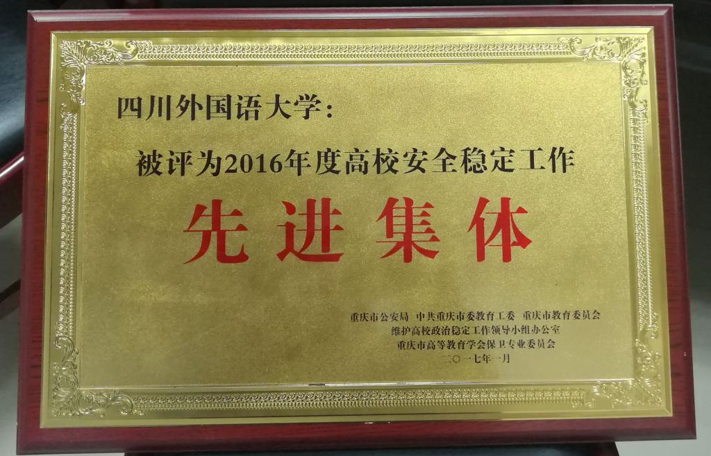 我校荣获2016年度重庆高校安全稳定工作先进集体