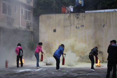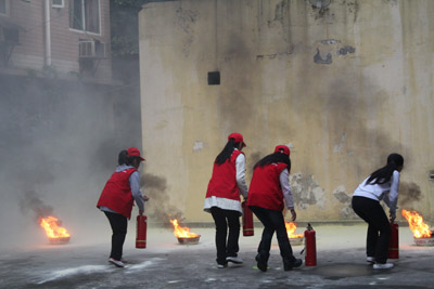 演练开始前,李培元为大家讲解了消防逃生最常用的五种方法。16时30分,消防警报响起,演练正式开始。兰苑1舍留舍同学在消防志愿者引导下迅速、有序、安全地从消防通道疏散。油盆火焰熊熊,队员们接到扑救命令后右手提着灭火器,左手握着喷管对准着火点喷射,干脆、利落地将油盆内的火苗扑灭。此次演练使广大师生接受了一次生动的消防安全知识教育,进一步增强了消防意识,掌握了科学逃生自救的方法。
