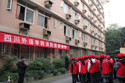 为全面加强学校消防工作“四个能力”建设,增强师生消防安全意识,进一步提高师生防范和应对消防安全事故的能力,12月2日下午,保卫处联合后勤集团在东区兰苑1舍开展了“四川外语学院消防实战演练”。副校长陈志彪到场观看演练并指导工作。消防演练由保卫处副处长李培元、李发友指挥,学校各部门消防安全负责人、大学生消防志愿者、各宿舍楼长等共200余人参加了消防演练。
