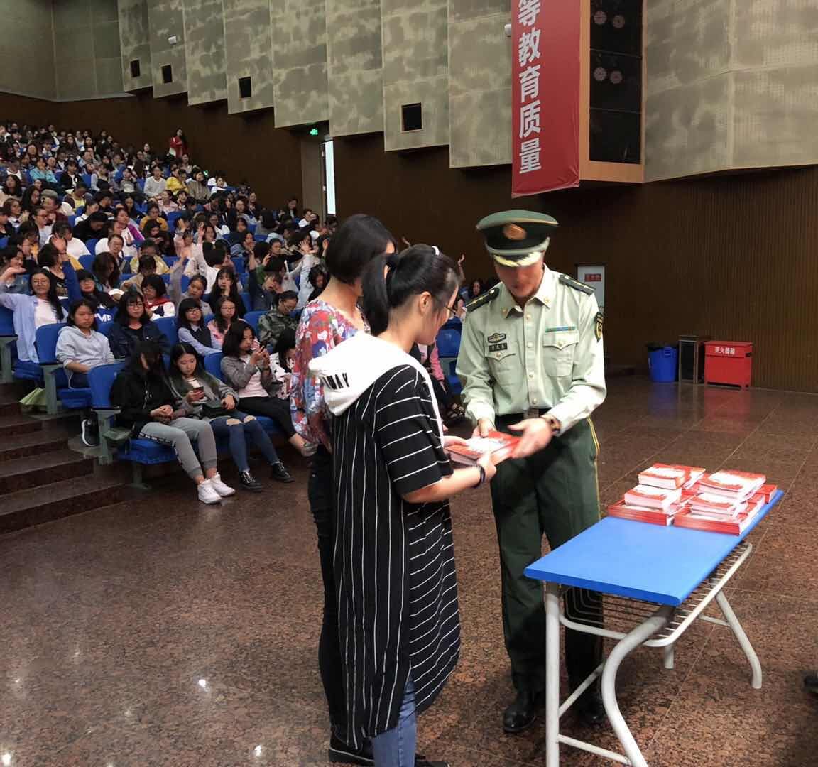 本次活动流程分为两大版块:一是消防知识讲座;二是向同学们发放消防知识手册。首先,重庆利民消防宣传中心温教官作消防安全讲座。他以消防“三提示、四能力”展开话题,结合生活中的实例,对校园消防安全要点以及火灾逃生技巧等知识作了全面生动的讲解。他现场演示了消防器材的使用,重点强调了“预防为主,防消结合”的消防工作方针和学习消防安全知识的必要性,并与在场师生互动。随后,童家桥中队副中队长刘昌果带队向参加军训的全部连队发放了600本消防知识安全手册。