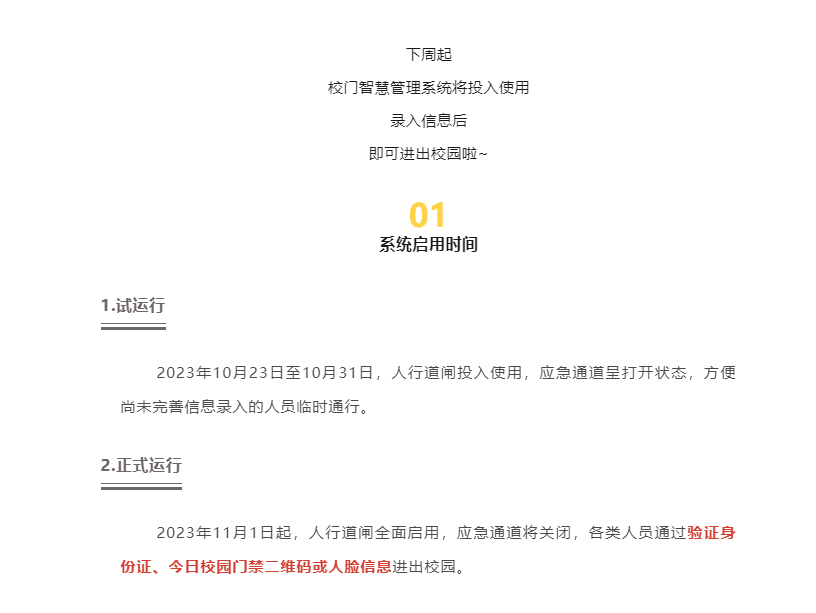 下周一,校门智慧管理系统开始使用啦~