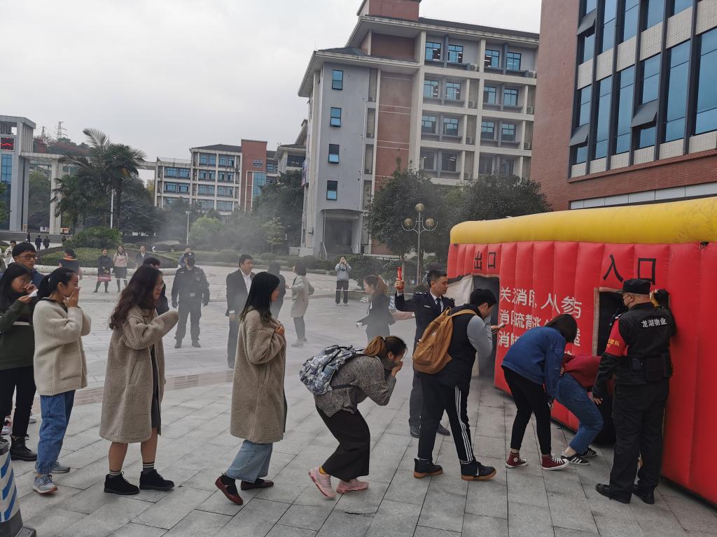 11月15日,在学校保卫处、图书馆和后勤管理处的精心组织下,图书馆工作人员、龙湖物业公司员工和学生楼长、楼层长共约300人,参加了我校2019年“119”消防宣传月系列活动。