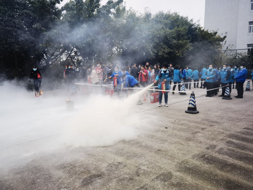 在消防实战演练环节,教官向受训人员讲授了“拔、握、瞄、扫”四字诀。在教官的指导下受训人员分为三组操作干粉灭火器,按照拔掉插销、迅速握住瓶把及橡胶软管、瞄准火焰根部、扫灭火焰部位的灭火动作要领,冷静、迅速、安全地完成了实战演练。