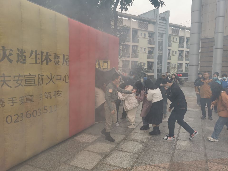 在模拟火场逃生训练环节,受训人员根据教官讲授的“低姿、捂口鼻、看指示牌”的逃生要领,在疏散引导员的指挥下,动作规范、安全有序地从火灾逃生体验屋中疏散撤离。
