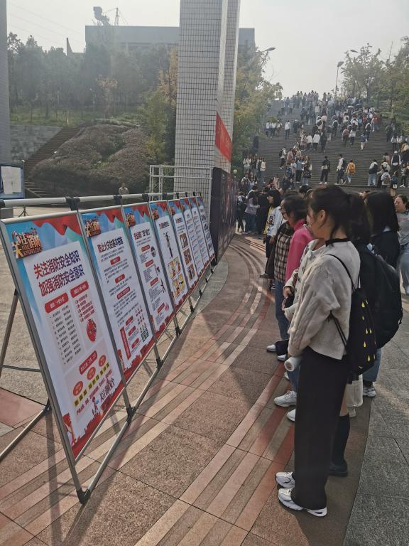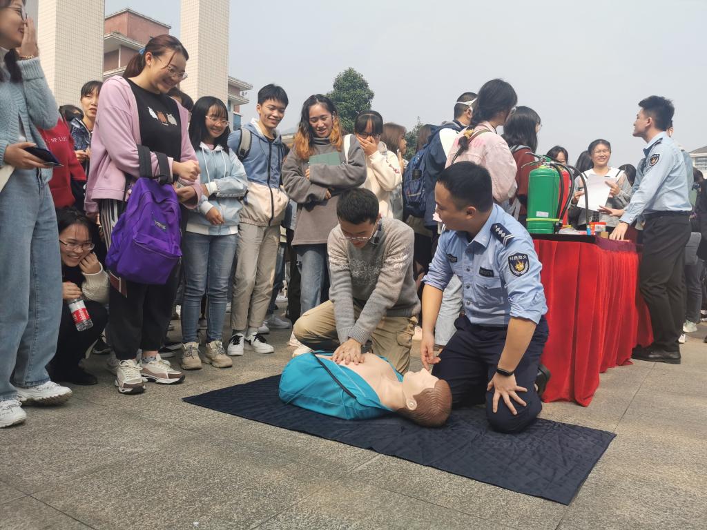 宣传活动分为消防知识展板、消防器材展台、心肺复苏培训等三大板块。消防知识展板涵盖了日常防火、灭火逃生等消防常识,吸引了众多师生驻足观看。